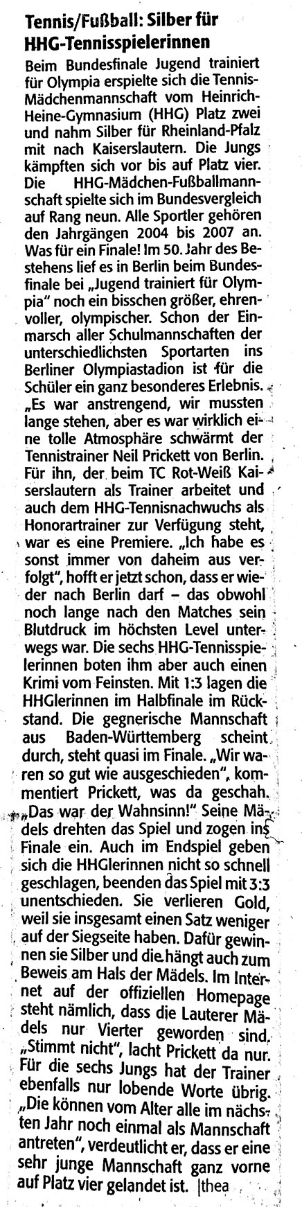 Die beiden Tennismannschaft des Heinrich-Heine-Gymnasiums sorgten beim Bundesfinale für die besten Ergebnisse aller Teams aus Rheinland-Pfalz.