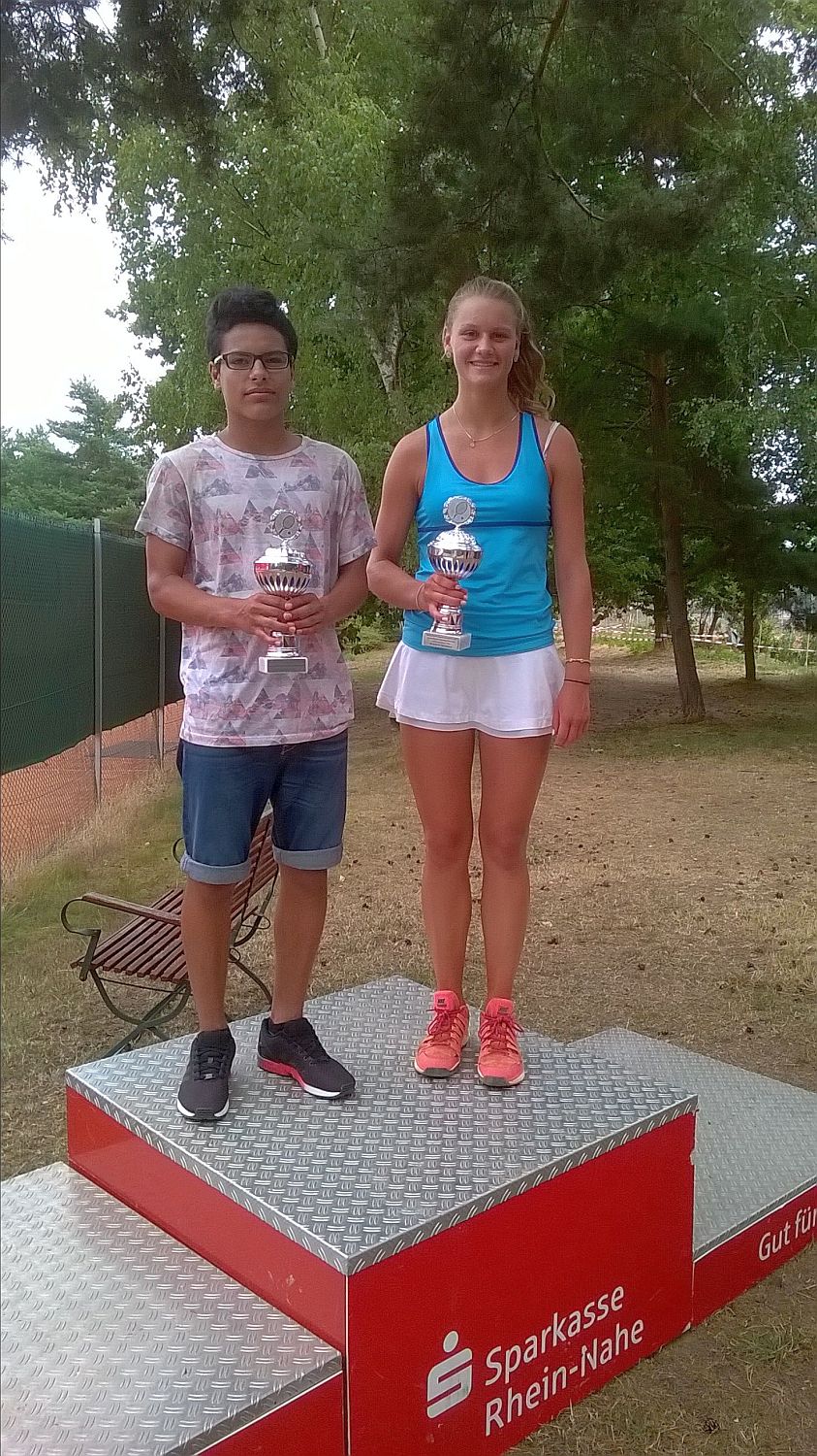 Auch Marlon Vankan gelang es seinen Titel aus der Hallensaison zu wiederholen. Wie im Winter gelang es ihm, alle vor ihm gesetzten Verbandsranglistenspieler zu schlagen und sich erneut den Jugendtitel des Rheinland-Pfalzmeisters zu sichern. Auch er musste im Halbfinale über den Tie-Break gehen, den er aber sicher 10:5 gewann. Im Endspiel wartete dann mit Yannick Fleur die Nummer 1 der rheinland-pfälzischen Kaderspieler. Während Marlon mit LK 13 eingeordnet ist, stand sein Endspielgegner bereits in der Leistungsklasse 7. Trotzdem legte der Neuzugang am HHG ohne Respekt los, und konnte durch druckvolles und platziertes Spiel überraschend ungefährdet den ersten Satz gewinnen. Bereits zu Beginn des 2. Satzes litt sein Gegner und Beschwerden im Arm und musste beim Stand von 4:1 für Marlon aufgeben. Trotzdem konnte der HHG´ler unter Beweis stelle, dass er einer der Spitzenspieler des Tennisverbandes Rheinland ist.