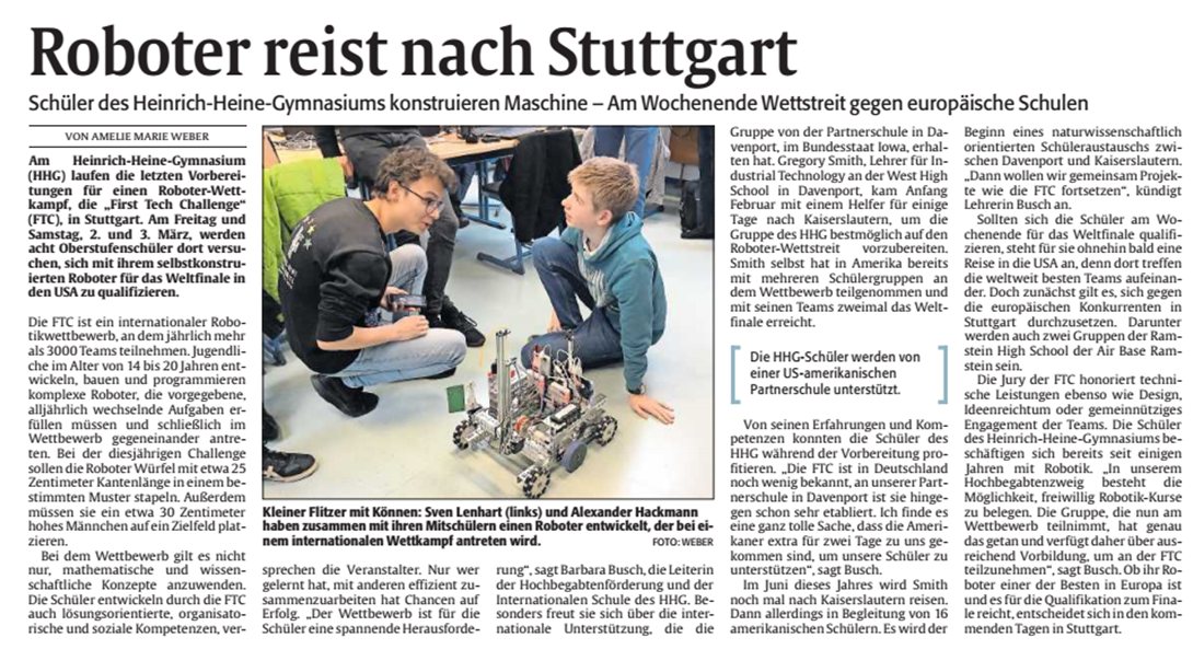 FTC-Wettbewerb - Roboter reist nach Stuttgart