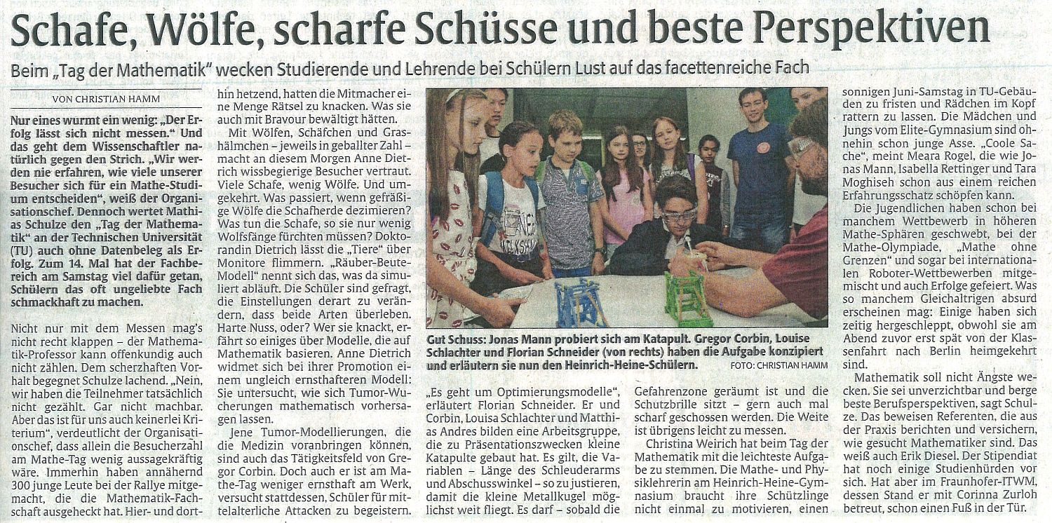 Tag der Mathematik 11.06.2018 Zeitungsartikel aus der Rheinpfalz vom 11.06.2018Mit freundlicher Genehmigung von Christian Hamm.