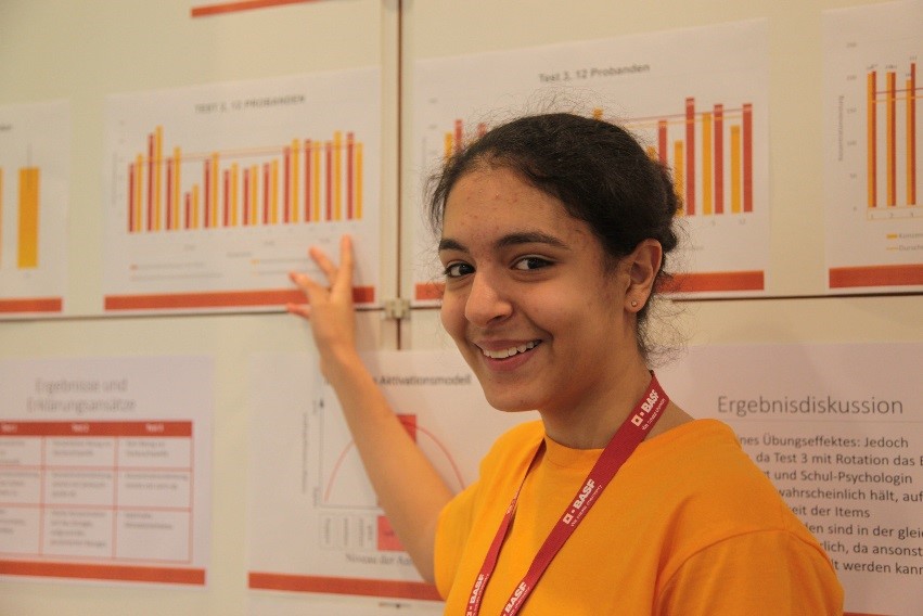 „Seid leise, damit ihr euch konzentrieren könnt!“ Ob diese Aussage wirklich so zutrifft, untersuchte Negin in ihrem Projekt. Nach der Auswertung von über 300 Einzeltests kam sie zu einem zunächst überraschenden Ergebnis: Steht das Geräusch nicht in einem sozialen Zusammenhang (Gespräch von Mitschülern), erreichten die Probanden die beste Konzentrationsleitung bei ca. 70dB Lautstärke und schnitten bei absoluter Stille am schlechtesten ab. Ihre Ergebnisse stellte immer wieder in Frage und überprüfte sie bis zum Landeswettbewerb mit weiteren Tests. Auch die Beratung mit Experten der Uni scheute sie nicht. Diese Herangehensweise beeindruckte die Jury immens.