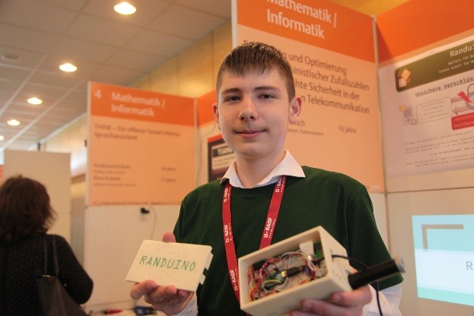 Robert hat es sich zum Ziel gesetzt, einen echten Zufallsgenerator zu bauen, dessen Werte nicht vorhersehbar sind, sondern auf Zerfallsreaktionen von Thoriumsalzen und akustischem Rauschen beruhen. Eine Anwendung wäre eine erhöhte Sicherheit im Bereich der Datenverschlüsselung. Die akribische Arbeit und der hohe Anwendungsbezug überzeugten die Jury restlos.