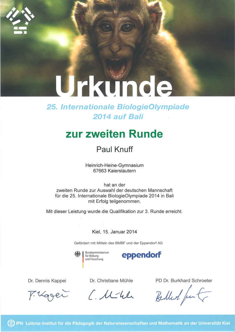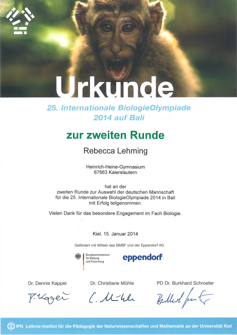 Unserer Gewinner bei der 25. Biologie Olympiade