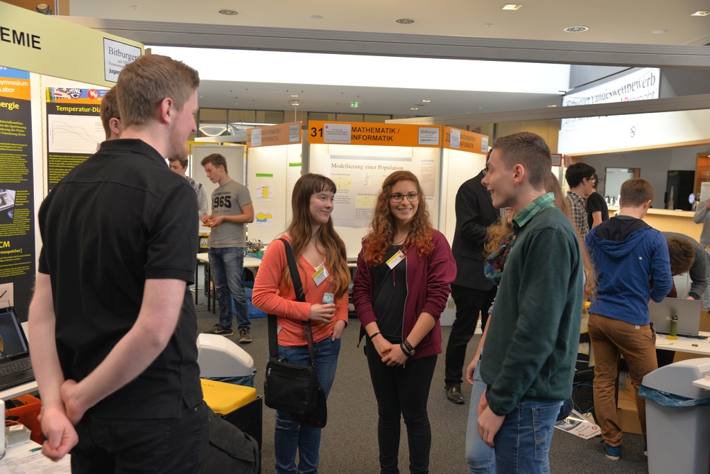 Unsere Schüler Jonas Bayer und Valentin Stümpert haben ihre Projekte und unsere Schule beim Landesfinale des Wettbewerbs "Jugend forscht" in Bitburg sehr gut präsentiert. Leider hat es nicht für ein Weiterkommen auf Bundesebene gereicht.