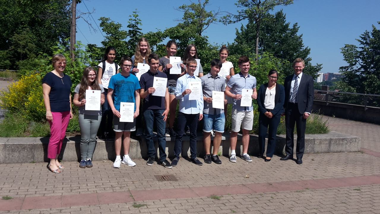 Am 14.06.2017 war die 2.Runde des Landeswettbewerbs Mathematik. Bei der Preisverleihung am Hohenstaufen-Gymnasium haben Tara Moghiseh, Malaika Schmit (beide 10h) und Paula Simgen (8h vom HHG Preise gewonnen.