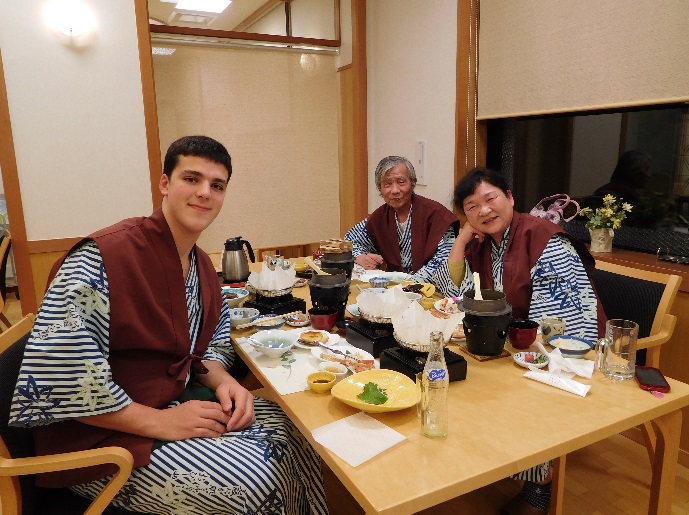Ich esse morgens Toastbrot, sonst gibt es meistens etwas, bei dem Reis dabei ist. In Japan hat man oft auch mehrere kleine Sachen anstelle eines großen Gangs. Die Fleischportionen hier sind deutlich kleiner als in Deutschland. Mindestens einmal am Tag gibt es zum Essen eine Misosuppe oder Ähnliches (meistens abends). Bis auf ein paar wenige Sachen kann ich hier alles essen. Ich habe auch schon Natto (vergorene Sojabohnen) in Nattomaki und Nattogohan gegessen.